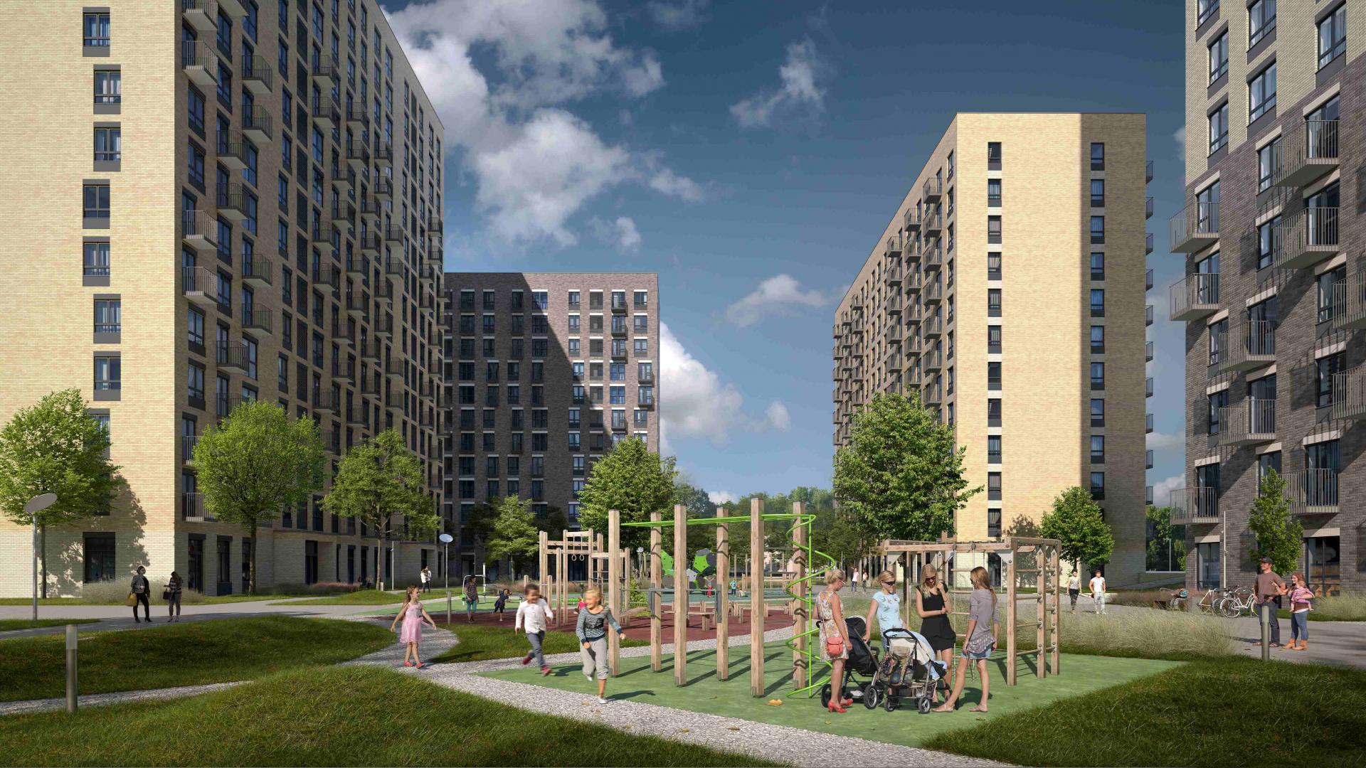Закрытые для въезда машин дворы, в которых дети смогут гулять в безопасности. Здесь будут установлены игровые эко-площадки. Зоны для спортивных игр будут оборудованы подальше от домов, чтобы не мешать жителям. В шаговой доступности три общеобразовательных школы и столько же детских садов.